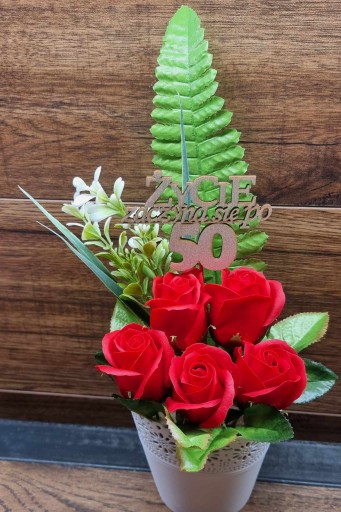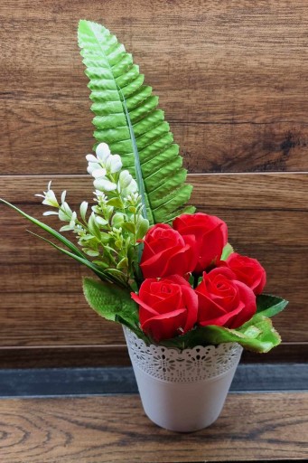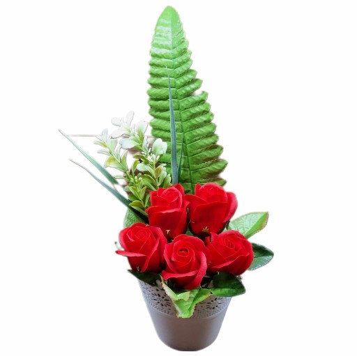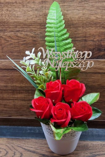 Na sprzedaż oferujemy kompozycję kwiatową - bukiet z kwiatami mydlanymi, które nie tylko udekorują wnętrze, ale również zapełnią je delikatnym i przyjemnym zapachem. Kompozycja została wykonana z wysokiej jakości materiałów, co gwarantuje trwałość i estetyczny wygląd.