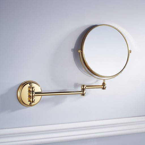 Зеркало для ванной комнаты настенное, увеличительное, двустороннее, регулируемое, золотое.