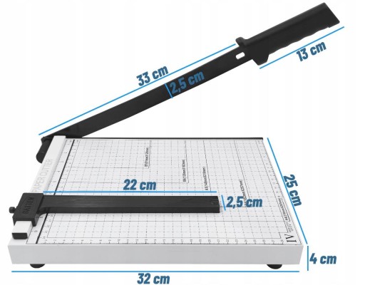 - Gilotyna tnie równo, można dzięki temu uzyskać proste krawędzi cięcia papieru, jak i dla profesjonalnych i amatorskich zastosowań jest idealna.
