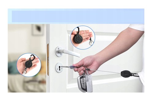 ▲ 【Wysuwany breloczek】Ten wysuwany 70-centymetrowy przedłużacz szpuli, więcej niż wystarczający, aby wygodnie sięgnąć tak daleko, jak sięga twoje ramię. Wygodne jest otwieranie drzwi bez plątaniny sznurka. Unikalna konstrukcja, elastyczny sznurek o rozsądnej długości i łatwy używać.