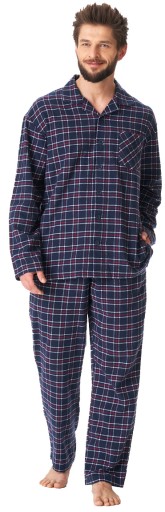 - Piżama męska wykonana z wysokiej jakości lekkiej flaneli z naturalnych włókien bawełnianych.