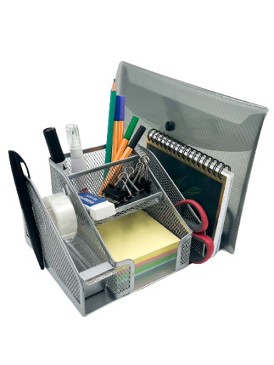 Wielofunkcyjny przybornik na biurko wykonany z metalowej siateczki to idealne rozwiązanie dla osób, które potrzebują porządku i organizacji w swoim miejscu pracy. Przybornik posiada wiele przegródek i półek, które umożliwiają przechowywanie różnych przyborów biurowych, takich jak długopisy, ołówki, gumki, spinacze czy zszywacze. Dodatkowo, na przyborniku znajduje się miejsce na listy, karteczki oraz dyspenser na taśmę, Dzięki swojej funkcjonalności i solidnej budowie ten przybornik sprawdzi się doskonale w każdym biurze czy miejscu pracy, zapewniając porządek i łatwy dostęp do potrzebnych przedmiotów. Kolor : srebrny Wymiary : 150 x 210 x 100 mm