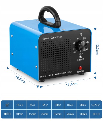 Ozonator jest wyposażony w timer który umożliwia zaprogramowanie czasu wyłączenia generatora ozonu po zadanym czasie.