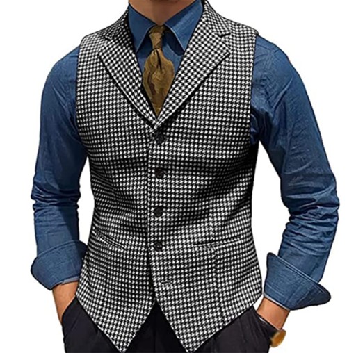 Multicolor Houndstooth Pattern Men's Suit Vest Waistcoat Wedding Clothing Tailored Party Wear Business Casual Dress V-Neck Top