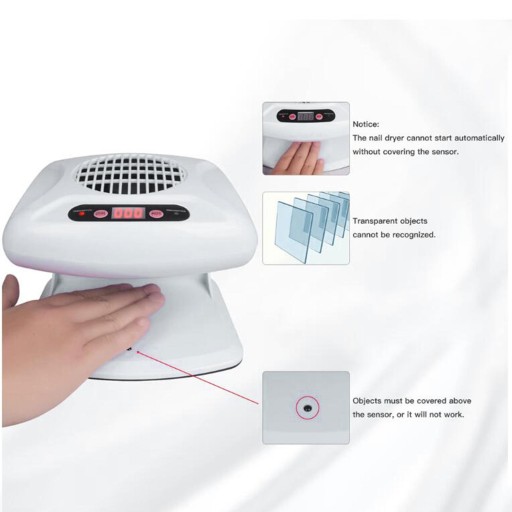 Automatyczny czujnik: czujnik aktywuje się automatycznie, gdy twoja ręka wejdzie do maszyny, silnik obrotowy o dużej mocy, silny wiatr, szybki, może szybko wysuszyć lakier do paznokci.
