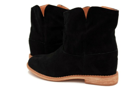CZARNE BOTKI KOWBOJKI ZAMSZOWE NA KOTURNIE