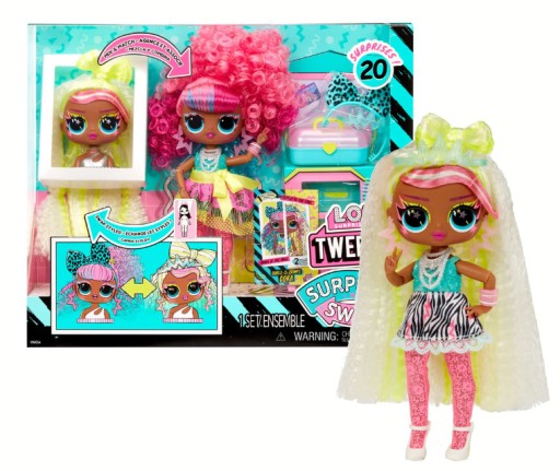 Połącz lalki Tweens Surprise Swap z przyciągającymi wzrok nowymi głowami do stylizacji Surprise Swap, z których każda ma wspaniałe włosy i akcesoria do włosów, aby jeszcze bardziej dostosować je do swoich potrzeb!