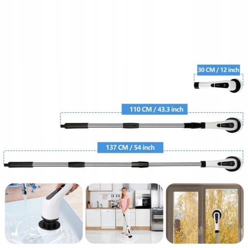 - Zawiera 8 głowic obrotowych do czyszczenia łazienek, wanien, pryszniców, blatów, pieców, zlewozmywaków, szkła, powierzchni kuchennych, płytek, wanien i innych