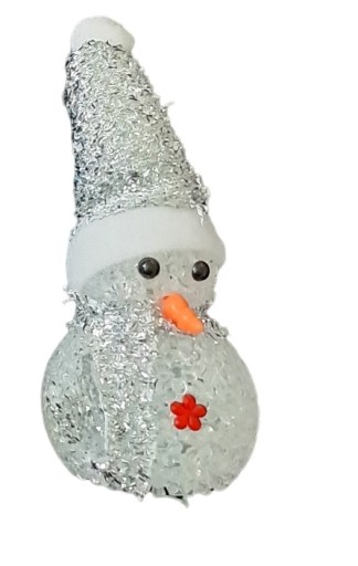 Bałwanek z czapeczką świecący światłem LED o zmiennym kolorze. Wspaniała dekoracja na okres świąteczny.