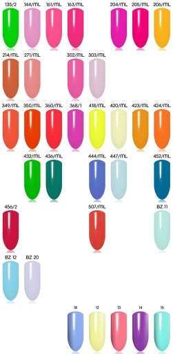 Żele zostały stworzone według nowoczesnej receptury - masa żelowa jest wytrzymała i elastyczna jednocześnie cechuje się bardzo dobrą przyczepnością zarówno do tipsa jak i do naturalnej płytki.