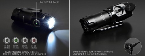 - zintegrowany wskaźnik poziomu naładowania baterii ułatwia monitorowanie stanu energii, pozwalając użytkownikowi wiedzieć, kiedy latarka jest gotowa do użycia