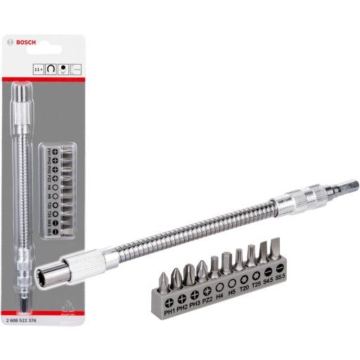 Zestaw 10 bitów z zestawie z elastyczną przedłużką firmy BOSCH.