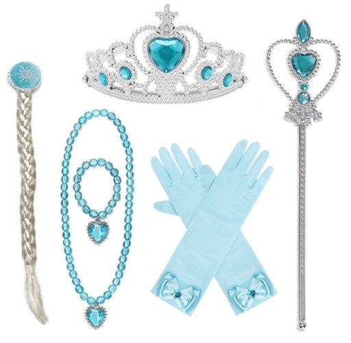 - Ten czteroczęściowy zestaw pozwoli poczuć się każdej dziewczynce jak prawdziwa księżniczka z bajki. Zestaw idealnie sprawdzi się na balu karnawałowym lub przyjęciu urodzinowym, ale także podczas codziennej zabawy.