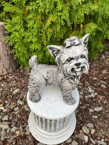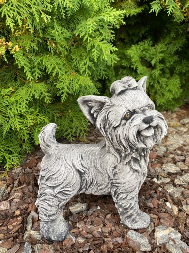 Садовая фигурка собаки йорка, бетонная фигура, собака йорк, декоративная скульптура