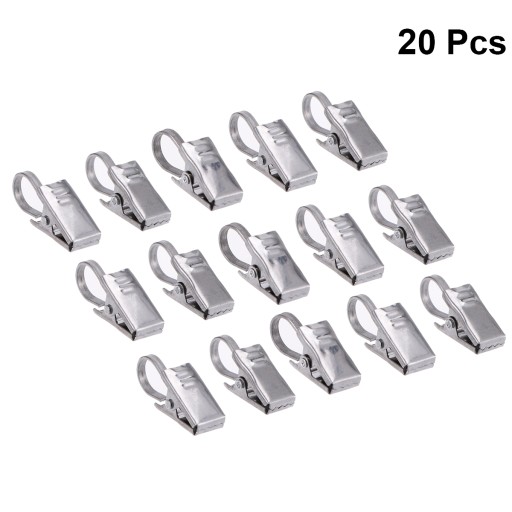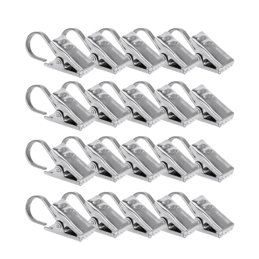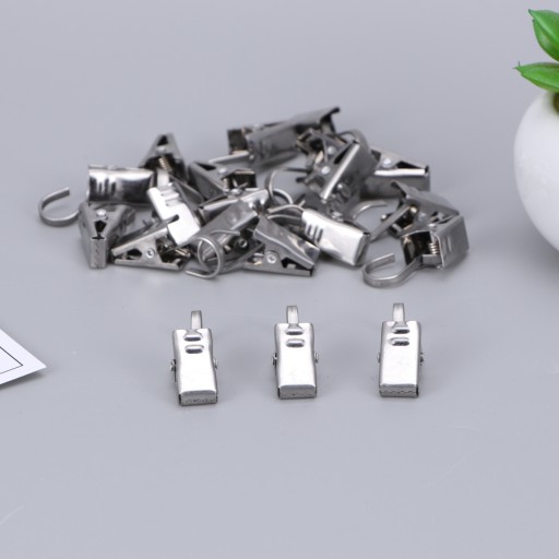 - 1 * zestaw 20 szt. Nierdzewnych klipsów do draperii z satynowego niklu z haczykiem