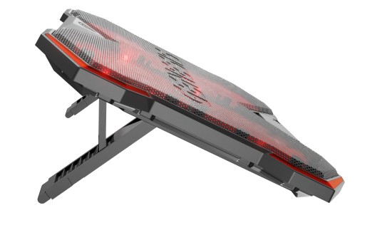 GENESIS Oxid 260 to nie tylko efektywna podstawka chłodząca, ale również stylowy dodatek na biurko. Jej agresywny design i czerwone podświetlenie wentylatorów podkreślają gamingowy charakter akcesorium.