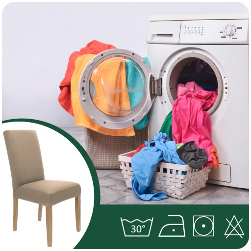 Pokrowca nie trzeba pracować. Po nałożeniu go na krzesło wystarczy przejechać ręką by dobrze się ułożył. Jeśli ktoś uważa, że potrzebuje prasowania wówczas polecamy niską temperaturę.