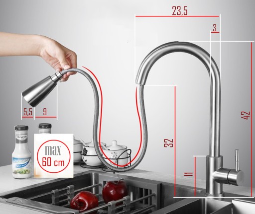 - Długość wyciąganego węża: max 60 cm