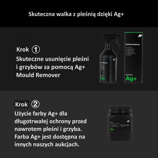 Dla długotrwałej ochrony przed nawrotem pleśni zalecamy również stosowanie Farby Ag+,która znajduje się w innych naszych ofertach na Allegro!