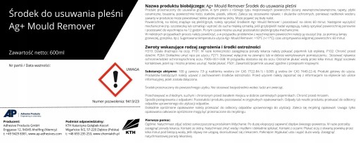 Powierzchnię, na której znajduje się pleśń/grzyb, należy spryskać środkiem Ag+ Mould Remover i pozostawić na okres 60minut. Następnie wyczyścić mechanicznie (np. szczoteczką lub szmatką) i wytrzeć do sucha miękką szmatką. Jeśli grzyb/pleśń nadal występują, należy spryskać powierzchnię ponownie i pozostawić do wyschnięcia na 12 godzin. Po tym czasie można usunąć pozostałości pleśni/grzyba mechanicznie.