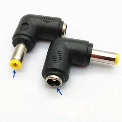 Adapter kątowy DC gniazdo 5.5X2.1 do wtyk 5.5X2.5 - Przejściówka Adapter kątowy DC to przejściówka z gniazda 2.1/5.5 na wtyk 5.5/2.5