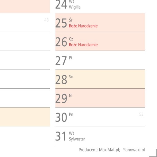 - w prawym dolnym rogu stopka producenta: MaxiMat, Planowaki.