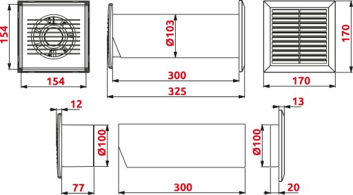- kanał wentylacyjny (Ø100 mm) - 300 mm