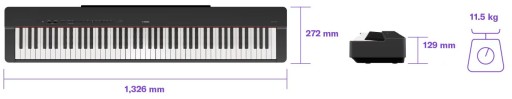 - Fortepianowa ważona klawiatura oferuje komfort gry i zapewnia odczucie klawiszy jak na prawdziwym fortepianie.