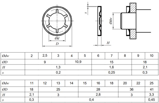 Zabezpieczenie sprężyste osiowe 4X10,9X1,3 AN 82 - 100 szt.