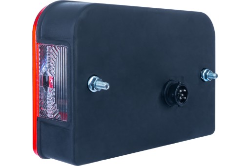 Lampa tylna zespolona producenta Dobplast przeznaczona jest do montażu po lewej stronie pojazdu. Wyposażona jest w sześć funkcji oświetlenia, w tym światło pozycyjne, hamowania, kierunkowskaz, światło przeciwmgłowe, oświetlenie tablicy rejestracyjnej oraz trójkąt odblaskowy. Lampa posiada przyłącze typu bajonet 5 PIN, co ułatwia jej instalację i podłączenie do systemu elektrycznego pojazdu.