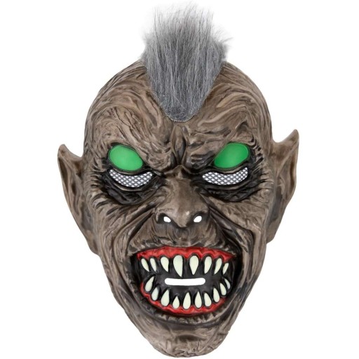 Szukasz nietuzinkowego i ciekawego elementu stroju na Halloween? W takim razie ta maska szalonego, obrzydliwego i przede wszystkim przerażającego goblina będzie w sam raz dla ciebie. Skóra goblina wygląda, jakby siedział w solarium o wiele za długo, dodatkowo powypadały mu włosy i została mu tylko mała kupka na środku głowy. Maska posiada również fluorescencyjne oczy, które po wcześniejszym naświetleniu świecą w ciemności na zielono co wygląda bardzo efektownie. Taka maska z pewnością zrobi wrażenie na wszystkich uczestnikach imprezy.