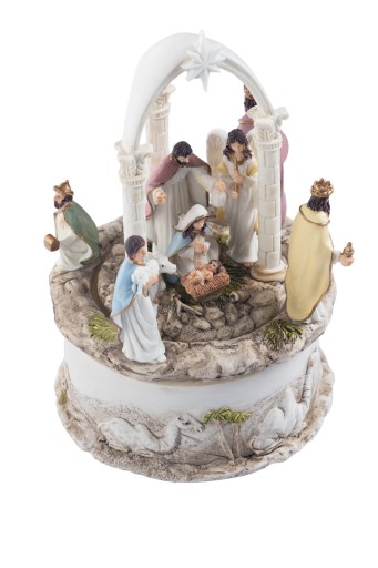 РОЖДЕСТВЕНСКАЯ МУЗЫКАЛЬНАЯ ШКАТУЛКА вертеп Святое Семейство РОЖДЕСТВО до 17см