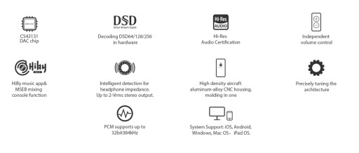 Zakres dynamiki do 120 dB, wyjątkowo wysoki współczynnik sygnału do szumu (SNR) wynoszący 120 dB, całkowite zniekształcenie harmoniczne + szum wynoszące 0,002% (1 kHz), wysoka wydajność i płynne przełączanie odtwarzania przy niskim zużyciu energii, wszystko to zapewnia stabilną transmisję dźwięku.