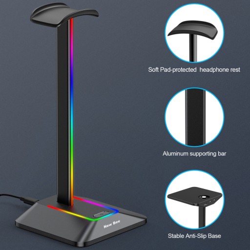 New Bee Z8 - Markowy stojak na słuchawki z podświetleniem LED i HUBem na dwa porty USB.