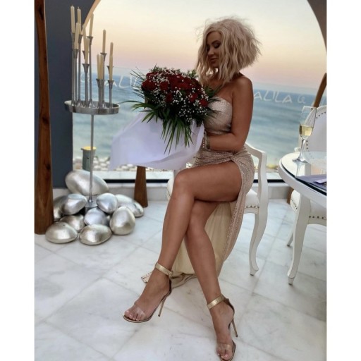 Gorset wykonany z elastycznego materiału z aplikacja mieniących się elementów w koralowym kolorze. Wycięty dekolt w kształcie serca posiada specjalnie wyodrębnione miejsce na biust. Model z wszytymi fiszbinami, które modelują sylwetkę i idealnie się dopasowują. Model zapinany z tyłu na haftkę i zamek.