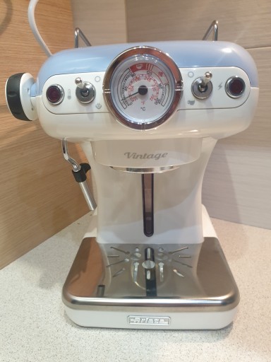 Witam. Posiadam na sprzedaż nowy expres kolbowy w stylu vintage. Jego design zachwyci nawet najbardziej wymagających miłośników tego stylu. Precyzja wykonania doskonale idzie w parze z pyszną kawą. Ekspres ten posiada spieniacz do mleka. Cena katalogowa:649,00 zł.