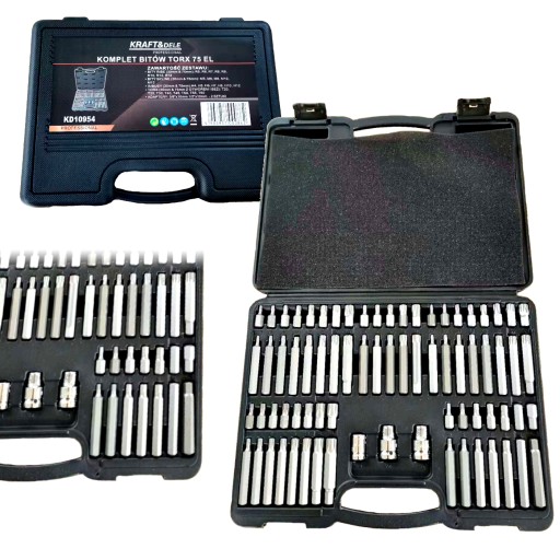 ZESTAW BITÓW KOŃCÓWEK TORX 75 ELEMENTÓW WALIZKA IMBUS SPLINE RIBE