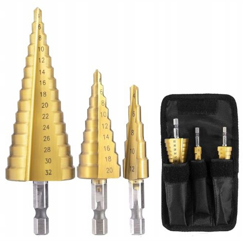 СТУПЕНЧАТЫЕ СВЕРЛА 4–32 мм КОНИЧЕСКИЕ ПО МЕТАЛЛУ НАБОР ИЗ 3 ШТ.