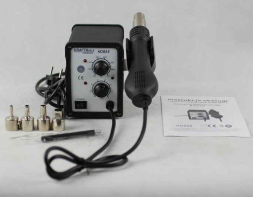 Urządzenie posiada pokrętło do płynnej regulacji temperatury grota i wydmuchiwanego powietrza oraz płynnej regulacji siły, dzięki czemu możemy dostosować parametry do naszych potrzeb.