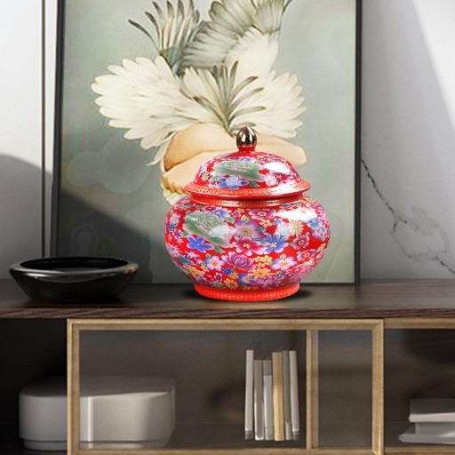 [Styl emalii kolorowej] ceramiczny słoik imbiru z tradycyjnym chińskim wzorem kwiatowym, kolorowa emalia, sprawia, że dekoracja pokoju wygląda bardziej stylowo