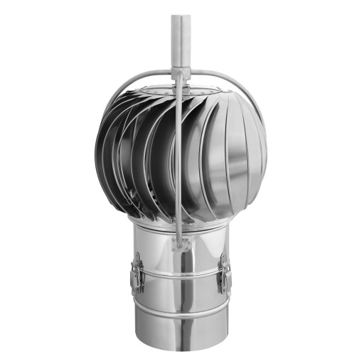 Obrotowa nasada kominowa TURBOWENT fi150 Z ZEWNĘTRZNYM ŁOŻYSKIEM jest urządzeniem wykorzystującym siłę wiatru do wspomagania ciągu kominowego. Niezależnie od kierunku, siły i rodzaju wiatru, turbina nasady obraca się zawsze w jedną i tą samą stronę. Montuje się ją na wylotach kominów spalinowych.