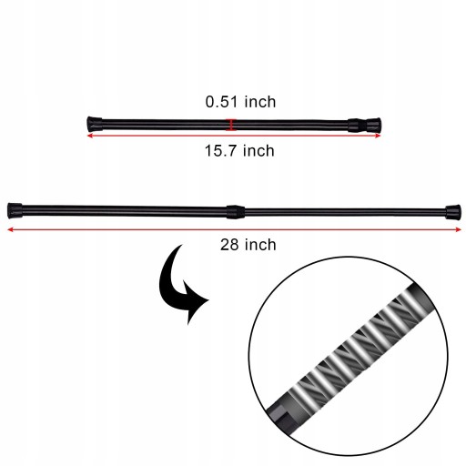 Zastosowanie: Pręty napinające jako karnisze napinające, drążki na ubrania, stojaki na buty, wieszaki na ubrania i inne.