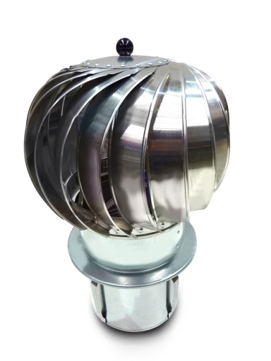 Nasada kominowa TURBOWENT Ø300 to urządzenie wykorzystujące siłę wiatru do wspomagania ciągu kominowego. Przeznaczona jest do instalowania na wylotach przewodów wentylacji grawitacyjnej wywiewnej. Działa jak pompa wysysając powietrze z komina jednocześnie uniemożliwia cofanie się powietrza do wewnątrz pomieszczeń.