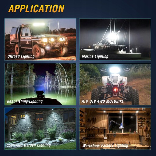 Oświetlenie terenowe: 4x4, samochód, ATV, UTV, SUV, ciężarówka, przyczepa, wózek widłowy, pociąg, łódź, autobus, oświetlenie zewnętrzne itp.
