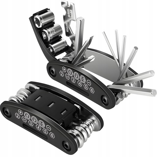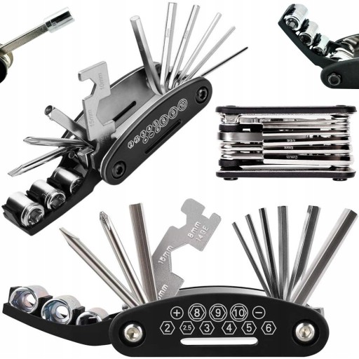 - Zestaw 16w1 - zawiera różne narzędzia niezbędne do najczęstszych napraw i regulacji roweru.