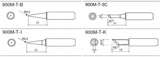 W skład zestawu wchodzą 3 dodatkowe groty do lutowania:
