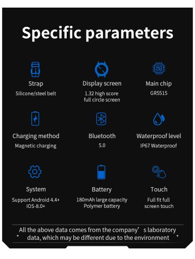 Wyświetlacz 1,32 cala | Rozdzielczość 360*360 | Monitorowanie tętna podczas ćwiczeń | Monitorowanie poziomu tlenu we krwi | Mocna żywotność baterii