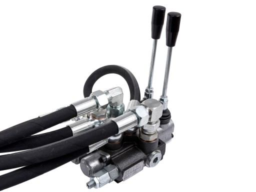 Rozdzielacz zewnętrzny C-330 2-sekcyjny węże elastyczne Zestaw. Pozwala na sterowanie podnośnikiem i hydrauliką zewnętrzną.