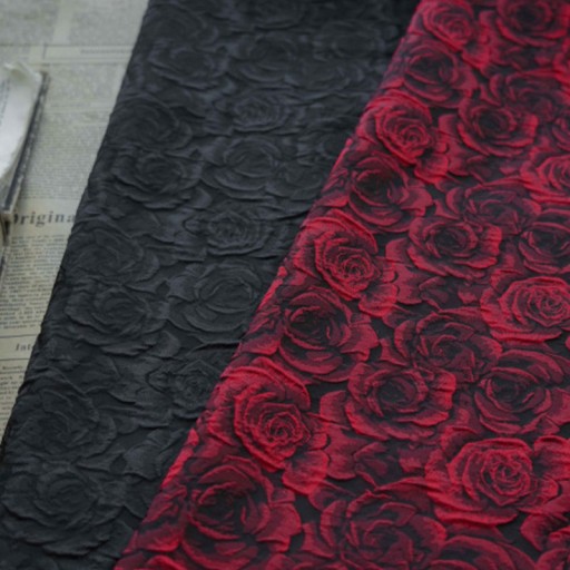 Жаккардовая окрашенная ткань с тиснением темно-красной розы 3D костюм для шитья своими руками