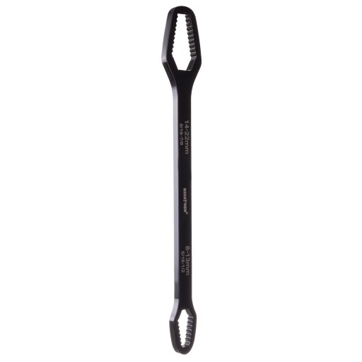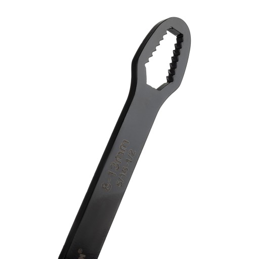 - SPECYFIKACJA - kolor: czarny; materiał: stal węglowa; zakres mniejszego oczka: 8 - 13 mm; 5/16" - 1/2"; E-10 – E-14; zakres większego oczka: 14 - 22 mm; 9/16" - 7/8"; E-16 – E-24; wymiar: 26,7 x 3,6 x 0,7 cm; waga: 168 g; waga w opakowaniu: 200 g.